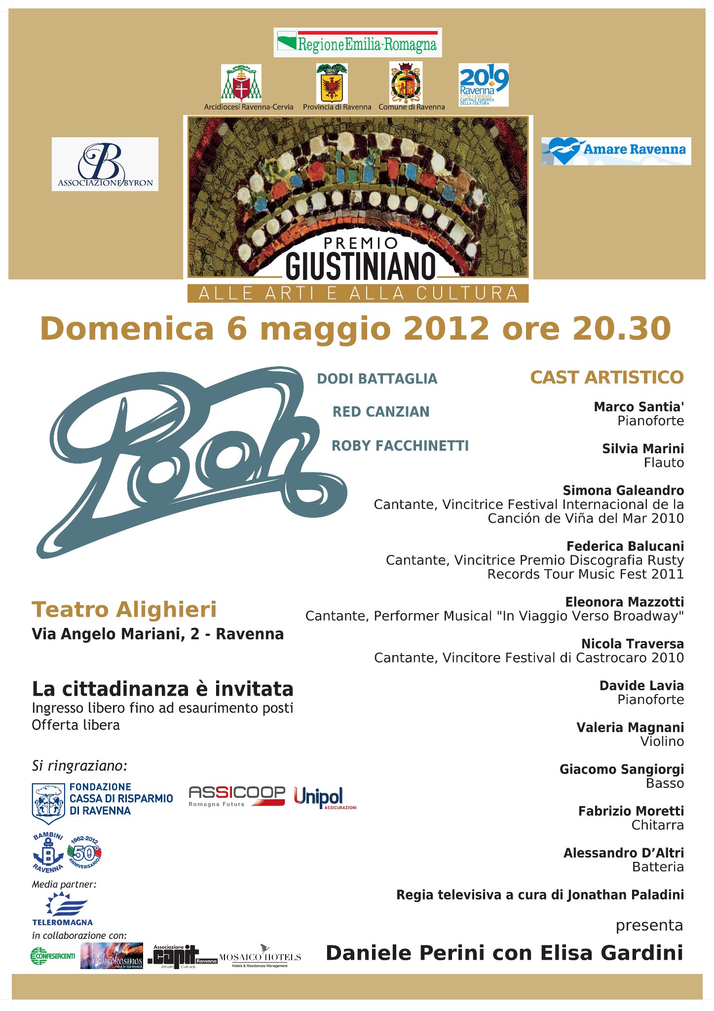Eleonora parteciperà con grande onore al Premio Giustiniano 2012. L’anno scorso cantò alla presenza di Gigi Proietti (foto qui), quest’anno il Premio sarà conferito ai Pooh. Oltre a loro, riceveranno riconoscimenti speciali altri famosi personaggi dello spettacolo. Eleonora canterà il suo inedito, L’amore non invecchia mai (M.Mancini, G.Bindi/M.Baker) accompagnata da un’orchestra! Serata da non perdere! […]